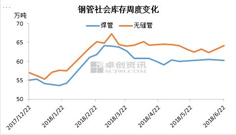 六月,鋼管的庫存水平呈小幅上升狀態(tài),最根本原因在于6月鋼材需求的疲軟,導(dǎo)致庫存消化慢。